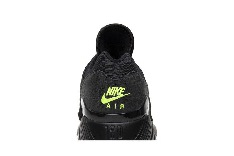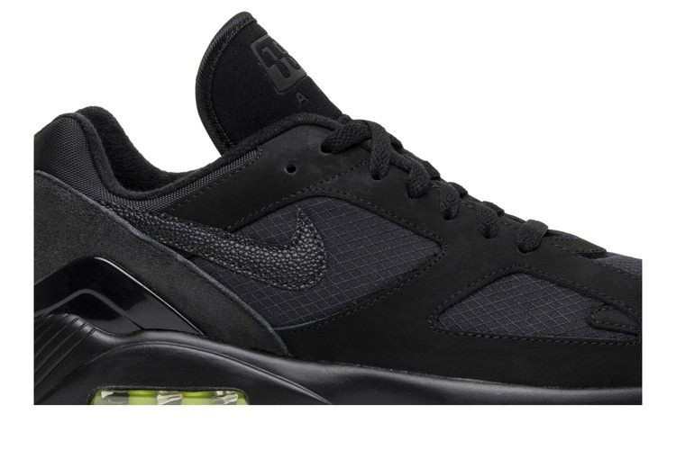 Air Max 180 "Night Ops" выглядят скрытно благодаря преимущественно тональному оформлению. Изящные штрихи вносят тисненый скат Swoosh и сетчатые подкладки из рипстопа, а неоново-зеленые акценты - технология Air Max и брендинг.