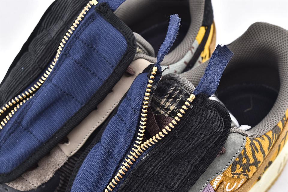 Трэвис Скотт и Nike добавляют новый дизайн в свой растущий арсенал Air Force с помощью Air Force 1 Low Travis Scott Cactus Jack, который теперь доступен на Slamdunk. После года господства кроссовок в мире, Nike добавляет изюминку в свой последний совместный AF 1 с Cactus Jack. Этот новый дизайн имеет невиданную ранее съемную кружевную крышку, которая закрывается тяжелой латунной молнией. Трэвис AF-1 имеет пэчворк, состоящий из камуфляжа, вельвета, утиного холста, фланели, кожи, замши и шерсти. Безошибочные знаки отличия Cactus Jack расположены по всему силуэту. Парусная мидсоль и резиновая подошва завершают дизайн. Эти кроссовки выпущены в ноябре 2019 года и продаются в розницу от 160 долларов.- Цвета: Multi-Color/Muted Bronze-Fossil