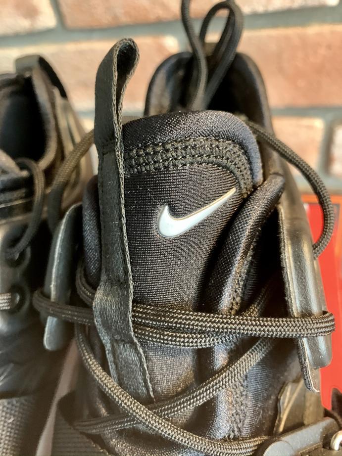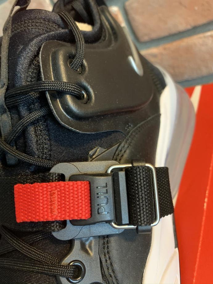Air Force 270 соединяют габаритный воздушный баллон Air Max 270 с многослойным, полностью чёрным верхом. Обтягивающая пятку обуви, полупрозрачный корпус амортизирующего устройства окрашен в светло-голубой оттенок. Белая мидсоль противостоит темным тонам над ней, а серебристый металлик на Swoosh добавляет чистый акцент. Ярко-красный ремешок на пряжке в средней части стопы отражает выдающийся элемент модели.- Цвета: Black/Metallic Silver-White