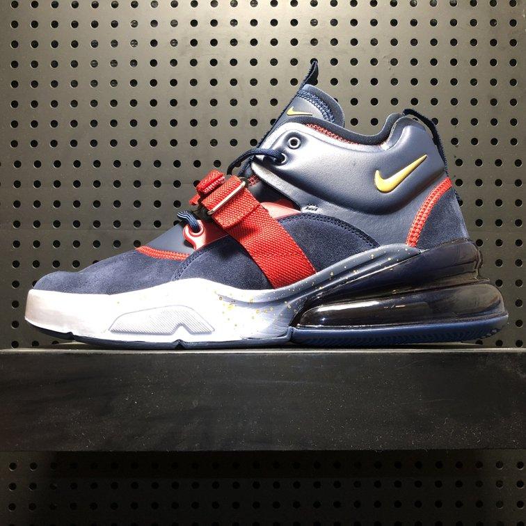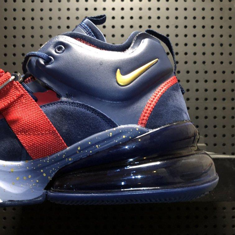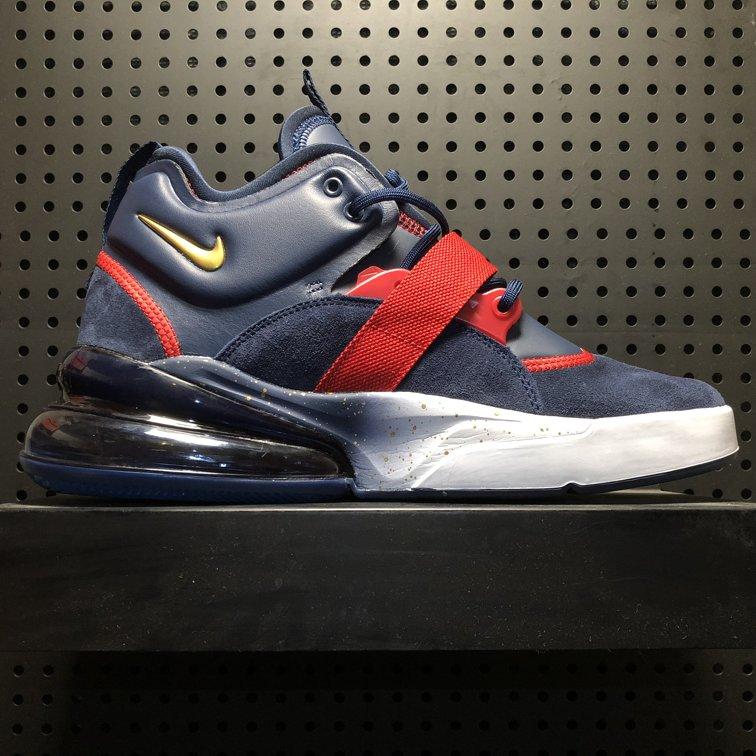 Расцветка Air Force 270 'Dream Team', выпущенная в мае 2018 года, отдает дань уважения знаменитой олимпийской сборной Dream Team 1992 года и кроссовкам Air Force 180 Чарльза Баркли. В то время как цветовая гамма из синего, красного и металлического золота является знакомым фрагментом униформы команды, верхняя часть также напоминает Barkley AF180. Фирменные детали включают ремень с пряжкой на середине стопы, золотой Swoosh, золотую забрызганную мидсоль и фирменный блок Max Air на каблуке.- Цвета: Obsidian/Metallic Gold-Gym Red-White