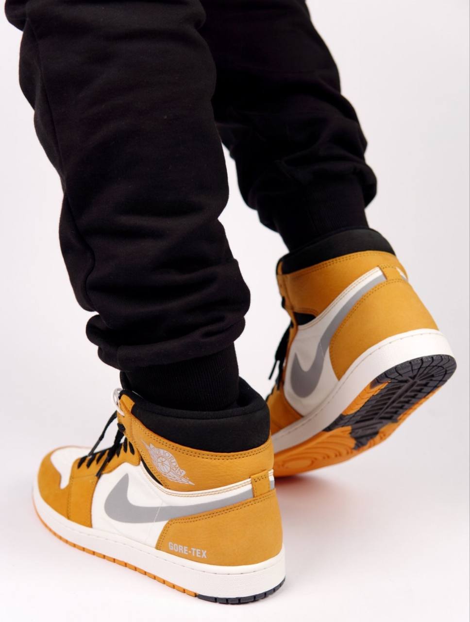 В расцветке Air Jordan 1 High Element GORE-TEX "Light Curry" основополагающие кроссовки получили устойчивый к погодным условиям внешний вид. Верхняя часть с подкладкой из водонепроницаемого материала Gore-Tex выполнена из белой ткани рипстоп с тональными накладками из нубука нежно-оранжевого оттенка. Уникальные элементы брендинга включают светоотражающий серебристый Swoosh и надпись "Gore-Tex" на боковой пятке. Кроссовки установлены на стандартную подошву AJ1, подчеркнутую пяточным блоком Air-sole, заключенным в полиуретановый клин.