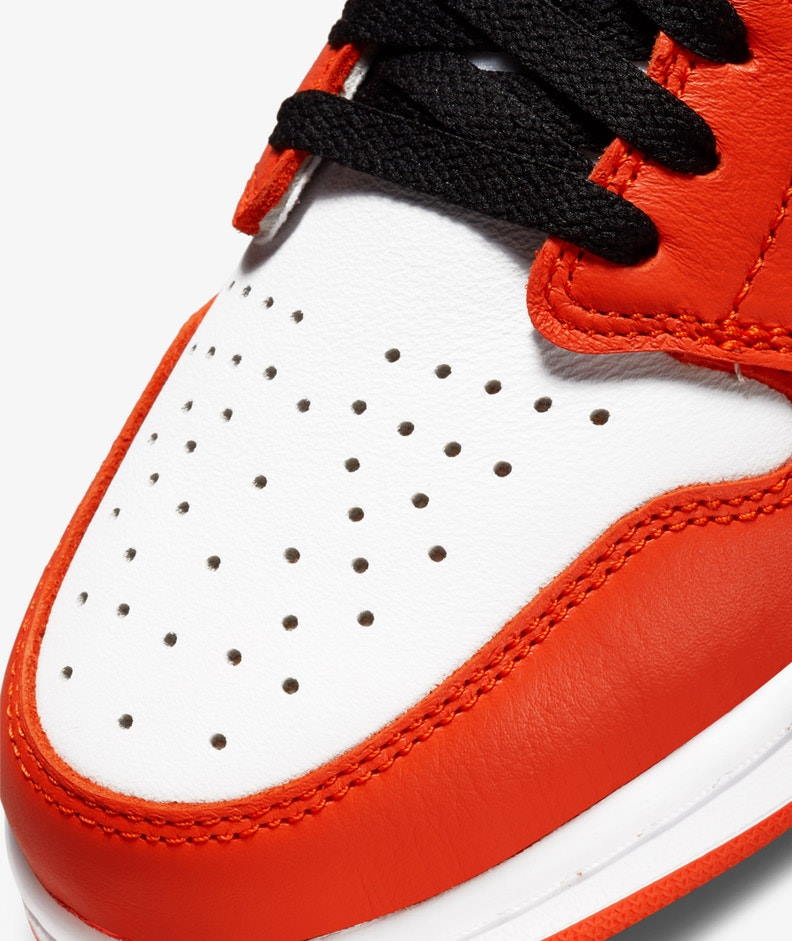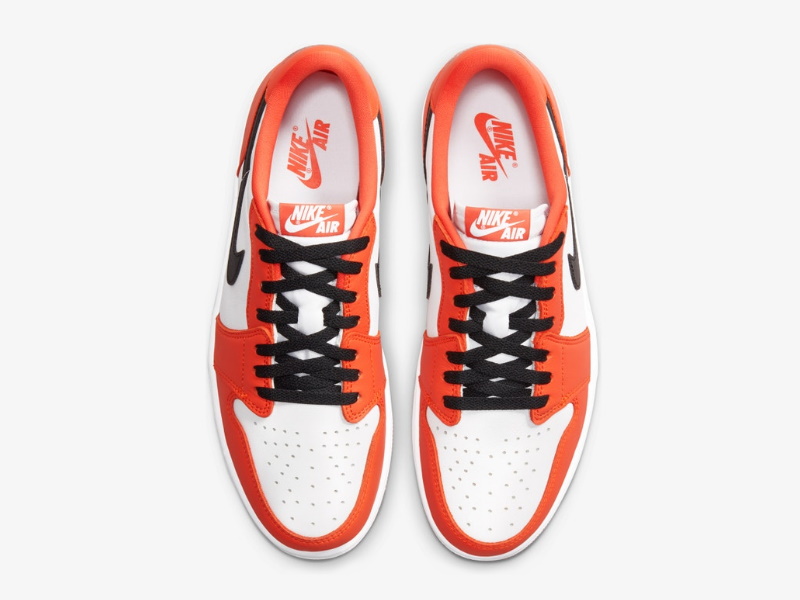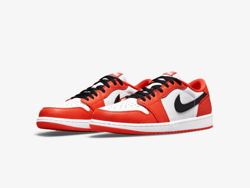 Air Jordan 1 Low OG «Starfish» имеет низкий кожаный верх, который сочетает в себе белоснежную основу с контрастными оранжевыми накладками на передней части стопы и пятке. Контрастные черные элементы украшают логотип Swoosh, шнурки и логотип Jordan Wings на пятке. Стелька и тканый язычок украшены логотипом Nike Air. Кроссовки имеют резиновую подошву с герметичной вставкой Air в области пятки.- Цвета: Starfish/White/Black