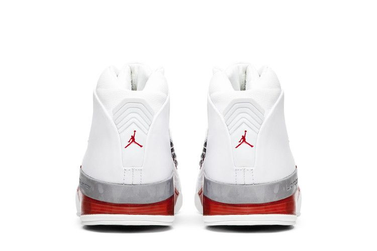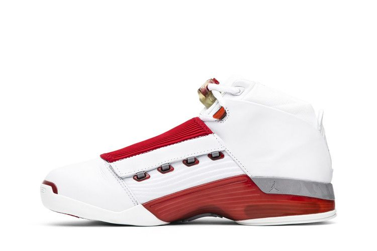 Эти Air Jordan 17, выполненные в простой бело-красной расцветке, относятся к оригинальной серии 2002 года. Именно эту модель носил Майкл, когда вернулся в игру в качестве игрока Washington Wizard, и она обладает преимуществами, которые были новинкой для Jordan Brand в то время. Среди них - выдувной формованный воздух, полноразмерная пластина голенища и стабилизатор пятки из TPU. Общий дизайн частично вдохновлен джазовой музыкой, что видно по нотам, начертанным на съемной крышке средней части стопы. Кроссовки упакованы в функциональный кейс, выполненный в гладком красно-хромовом цвете.