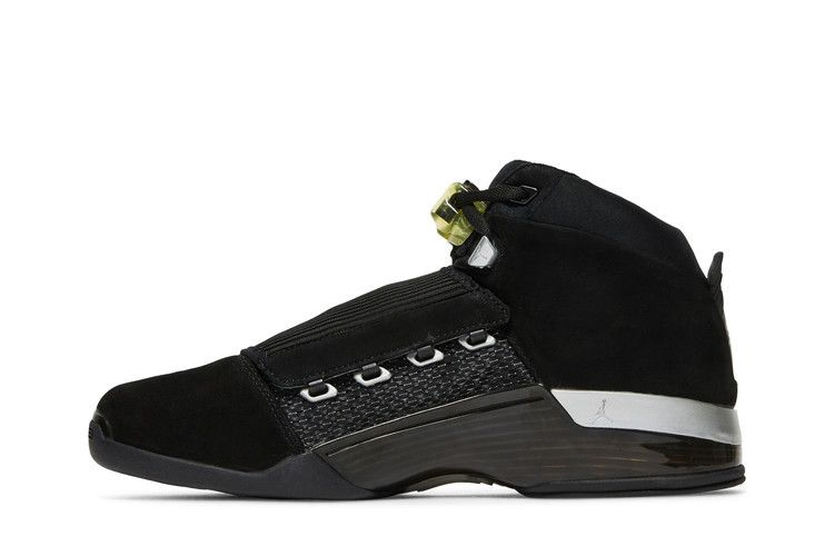Эти Air Jordan 17 Retro взяты из набора Countdown Pack 2008 года от Jordan Brand. Выполненные в черно-серебристой расцветке OG, эти кроссовки имеют верх из черного нубука со съемной шнуровкой, которая придает им обтекаемый вид. В кроссовке также используется технология Tuned Air, стабилизатор пятки из TPU и полноразмерная пластина голенища.