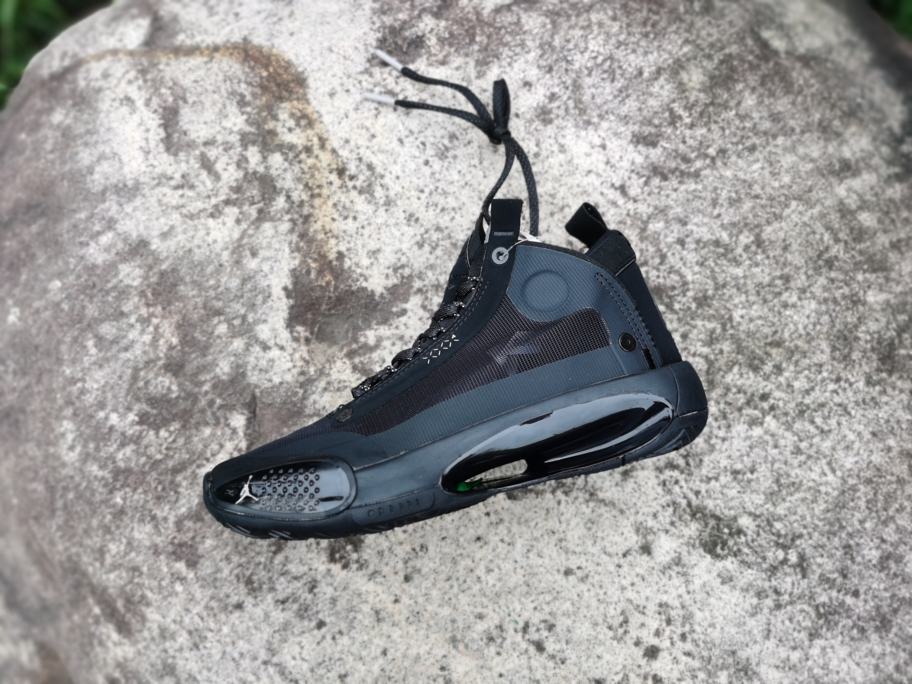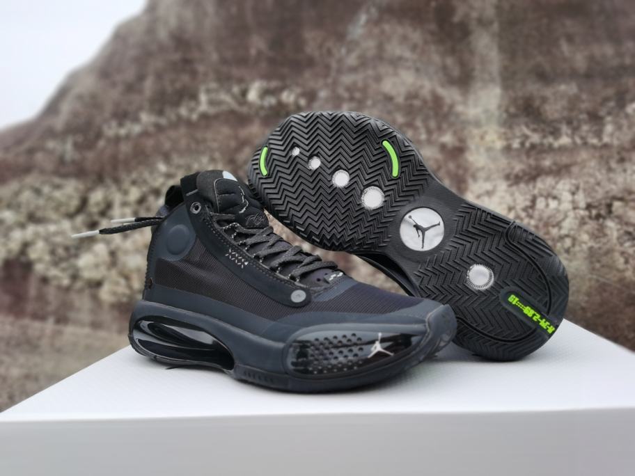 Модель Air Jordan 34 PF Black Cat выпущена в конце 2019 года в темной цветовой гамме, подчеркивающей инновационные технологии обуви. Эти кроссовки созданы дизайнером Тейтом Куэрбисом и ориентированы на легкость. Верх сочетает в себе функциональные ультралегкие материалы, логотипы бренда и систему шнуровки. Полностью черный цвет подчеркивает этот прогрессивный дизайн.- Цвета: Black/Black/Dark Smoke Grey/Electric Green
