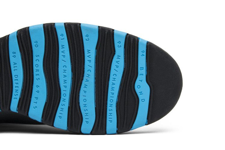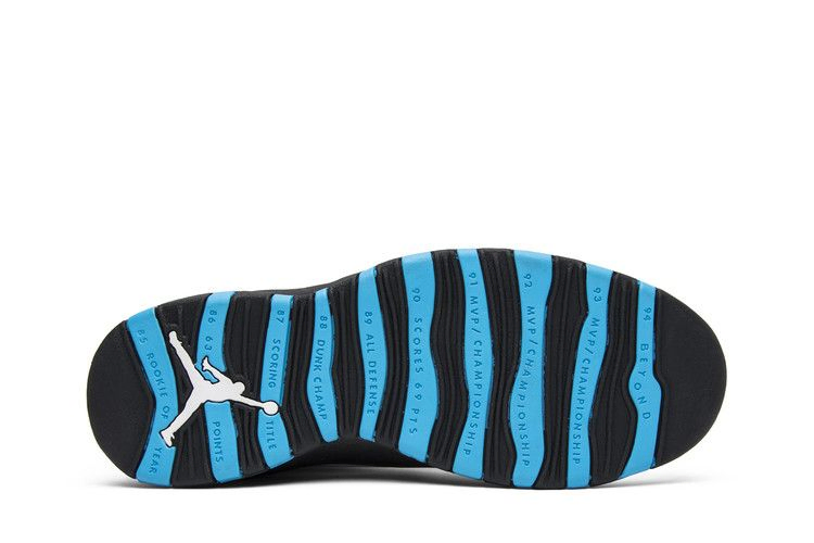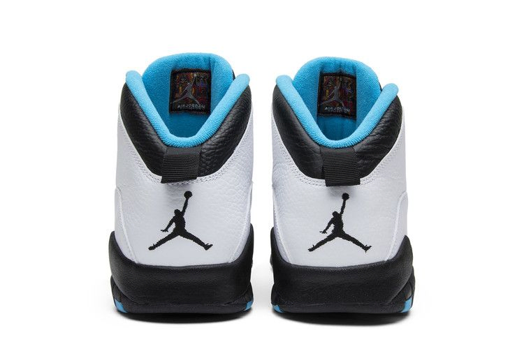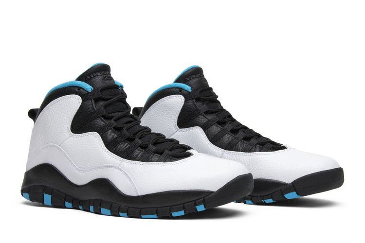 Выпущенные в феврале 2014 года Air Jordan Retro 10 "Powder Blue" 2014 - это ретро-версия модели OG 1994 года. Дизайн сочетает в себе верх из белой и черной галтованной кожи с пудрово-синей подкладкой. Кроссовки также имеют черную промежуточную подошву и полосатую черно-пудрово-голубую подошву, на которой изображена хронология карьерных достижений Майкла Джордана.