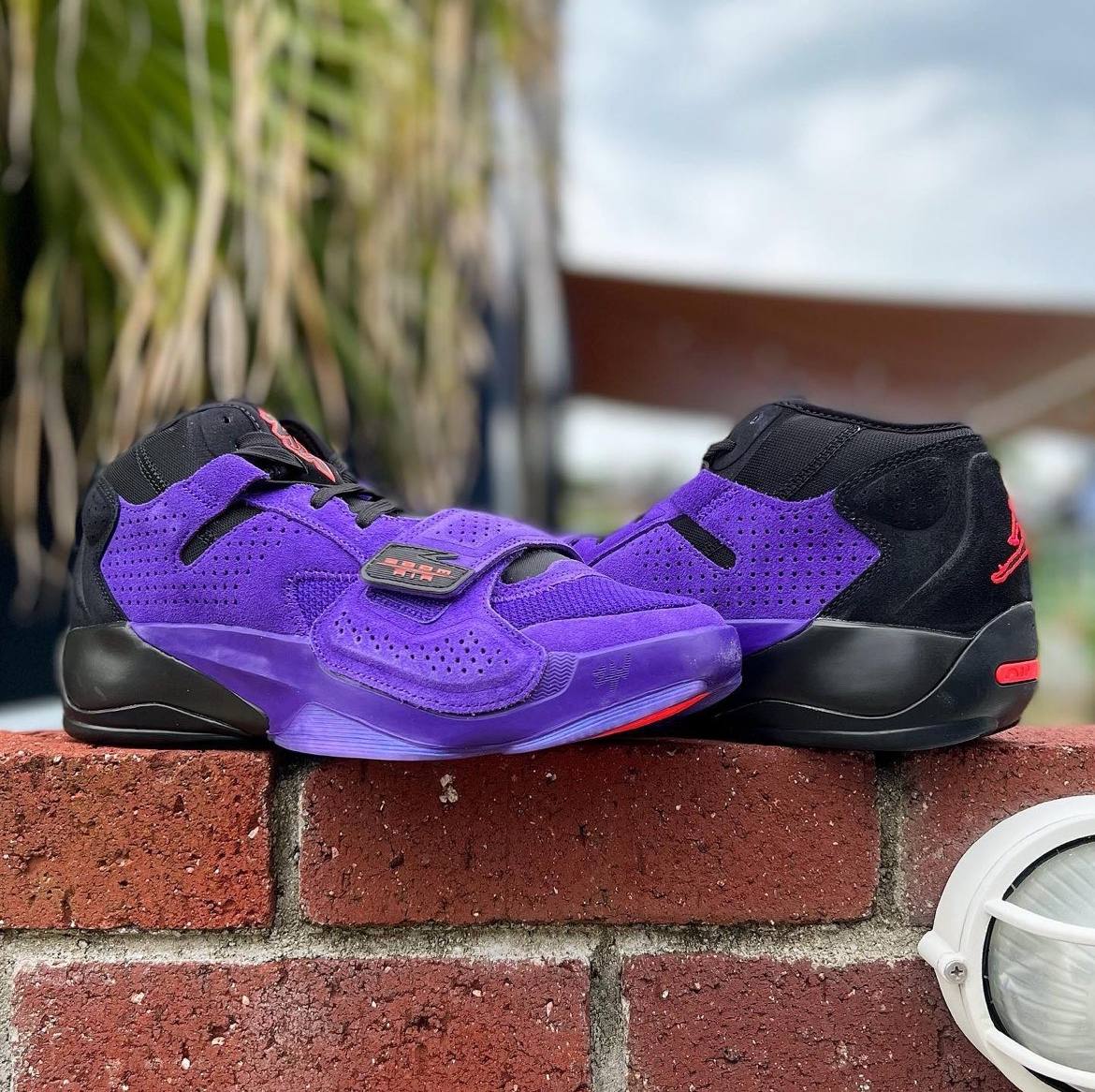 Air Jordan Zion 2 PF Out of This World оживляет вторую фирменную обувь Зиона Уильямсона фиолетовым верхом и регулируемым носочным ремешком, выполненными из синтетической кожи. Остальная часть верха состоит из черной сетчатой носочной части и накладки из синтетической кожи с перфорацией для лучшей воздухопроницаемости. Надпись "Zion" находится на язычке, а брендинг Jumpman украшает заднюю часть пятки. Чувствительная амортизация обеспечивается блоком Zoom Air в носочной части, усиленным резиновыми боковинами в клетку, и большим блоком Air Strobel в пятке.- Цвета: Court Purple/Bright Crimson/Psychic Purple/Black