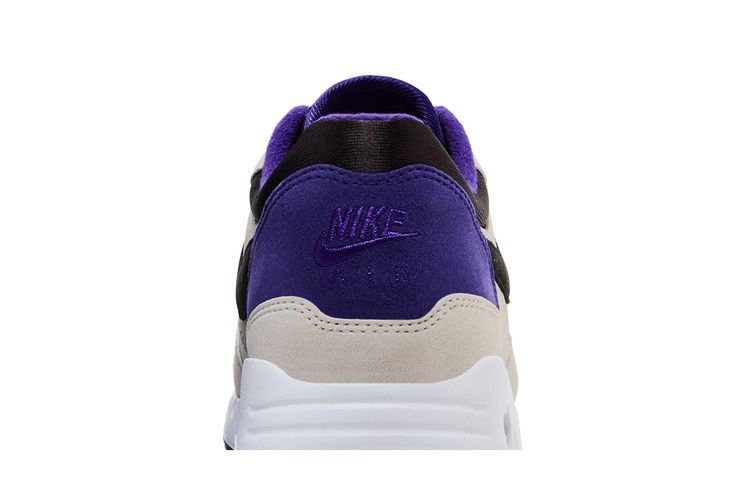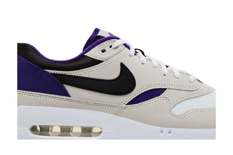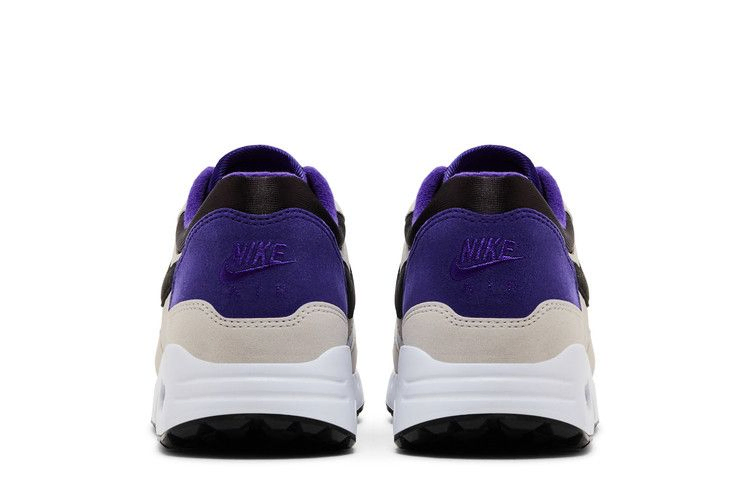 Nike Air Max 1 '86 OG Golf "Big Bubble - Purple Punch" демонстрирует водонепроницаемый верх, сочетающий белую сетку на носке со светло-серой кожаной отделкой и черным фирменным логотипом Swoosh. Контрастные фиолетовые акценты выделяются на кожаной накладке пятки и текстильной подкладке воротника. Легкая амортизация обеспечивается белой подошвой из пеноматериала, дополненной объемным блоком Max Air в пятке.
