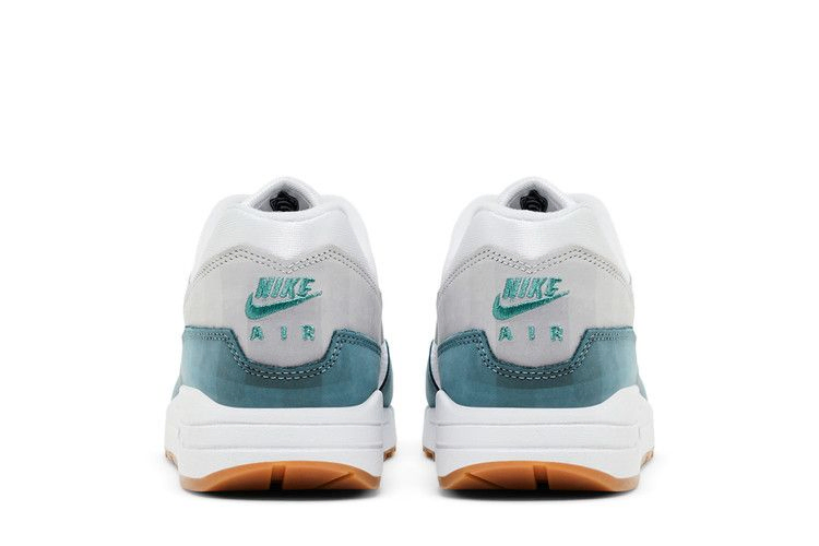 Nike Air Max 1 'Low Poly - Adventure Tomb Raider', выпущенные эксклюзивно на веб-платформе Nike .SWOOSH, демонстрируют цветовую схему, вдохновленную героиней видеоигр Ларой Крофт. Белый сетчатый верх контрастирует с серыми кожаными накладками, тиловым цветом Swoosh и брызговиком. Эти детали выполнены в эстетике low-poly, подчеркнутой угловатыми линиями. Язычок украшает пикселизированная бирка Nike, а инструкции на носочной части ссылаются на чит-код Tomb Raider 1996 года.