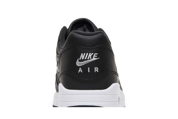 Nike использует свой логотип в классическом дизайне Air Max 1, изображая мини-Свуш на задней панели. Серебристые Swoosh выполнены из черной кожи премиум-класса, а монохроматический дизайн контрастирует с белой промежуточной подошвой, на которой расположено фирменное окошко Air.