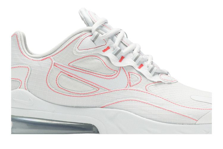 Легкий верх Air Max 270 React SP "Flash Crimson" изготовлен из белого рипстоп-текстиля с тональными накладками без швов. Контрастная красная строчка подчеркивает плавные линии кроссовка, а светоотражающие детали на петлях шнурков обеспечивают дополнительную видимость в условиях недостаточной освещенности. Кроссовки опираются на промежуточную подошву, сочетающую в себе пеноматериал Nike React и большой видимый блок Max Air в пятке, обеспечивающий отзывчивую амортизацию и плавный ход.