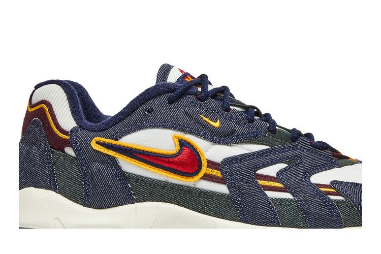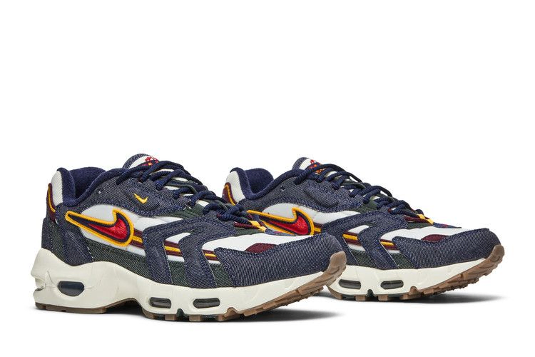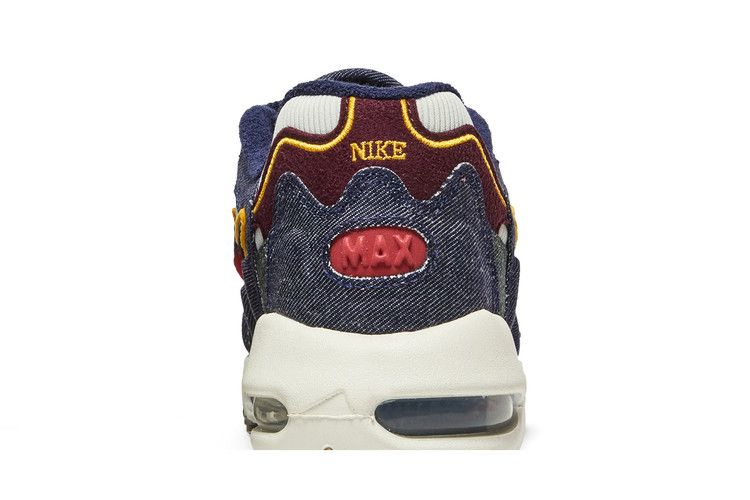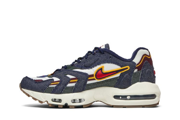 Nike Air Max 96 II QS "Blackened Blue" возвращает ретро-силуэт 90-х, разработанный Серджио Лозано, человеком, ответственным за Air Max 95. Винтажные кроссовки переосмыслены с белым текстилем и джинсовыми накладками черного и индиго цвета. На заднике красная вышивка Swoosh, выполненная в темно-желтом цвете. Дополнительный цвет придает бордово-золотистая накладка, которая проходит по средней части стопы и огибает пятку. Кроссовки имеют белую полиуретановую промежуточную подошву с синими блоками Max Air в носочной и пяточной частях.