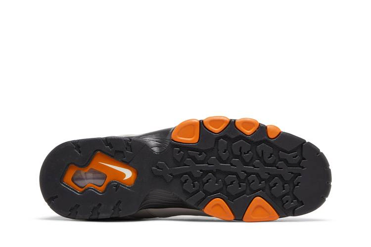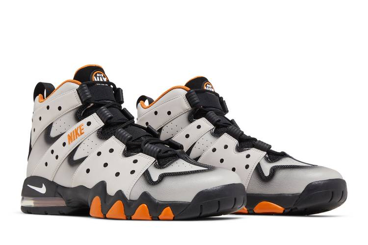 Nike Air Max 2 CB 94 'Airbrush - Light Iron Ore' возвращает фирменные кроссовки Чарльза Баркли в нейтральном цветовом решении. Система быстрой шнуровки фиксирует верх из кожи цвета загара, украшенный перфорацией и черными линиями, нанесенными краской. Контрастные оранжевые акценты расположены на текстильной подкладке и вышитом на боковой стороне логотипе Nike. Кроссовки опираются на черную подошву из пеноматериала, оснащенную блоком Max Air в пятке и поддерживаемую двухцветной резиновой подошвой.