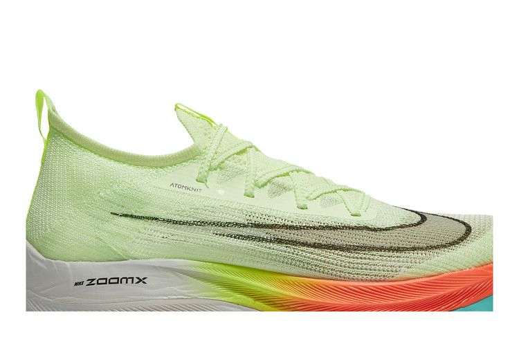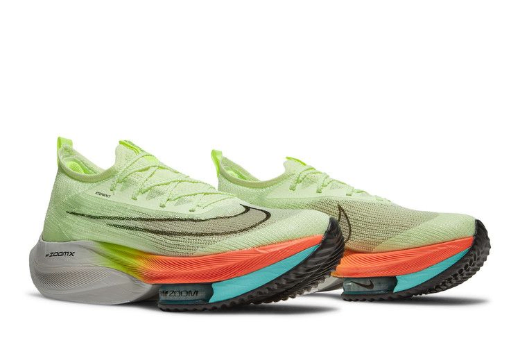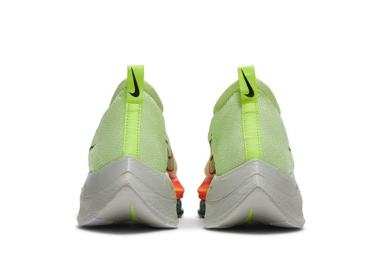 Nike Air Zoom Alphafly Next% 'Fast Pack' обновляет лучшие беговые кроссовки с помощью привлекательной цветовой схемы. Неоново-зеленый оттенок заливает верх AtomKnit - эволюцию Nike Flyknit, которая стала более легкой и воздухопроницаемой. Градиентные пастельные тона переходят в белый цвет на пенополиуретановой подошве ZoomX, усиленной по всей длине пластиной из углеродного волокна и оснащенной двумя заметными блоками Zoom Air в передней части стопы. Подошва выполнена из прочной резины и имеет рисунок сцепления, основанный на данных, полученных от сотен бегунов.