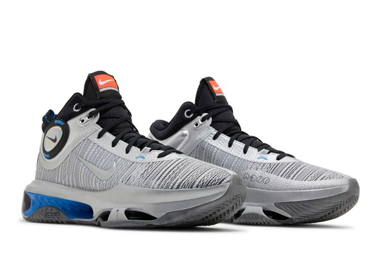 Модель кроссовок Nike GT Jump 2 "All-Star" вдохновлена моделью Nike Total Air Foamposite Max, которая была выпущена в 1998 году и которую носил Тим Данкан. Верхняя часть кроссовок выполнена из серебристой сетки с тональными накладками без швов и обеспечивает легкую поддержку. Брендинг Nike Swoosh украшает оранжевый язычок и переливающиеся щиколотки. Легкий материал Phylon, окрашенный в серебристый цвет и оснащенный амортизацией React из пеноматериала, окрашен в светло-голубой цвет. Открытые амортизаторы Zoom Air в передней части стопы обеспечивают возврат энергии при каждом шаге.- Артикул: FZ4614-001