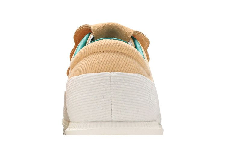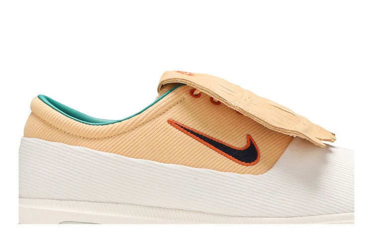 В модели Air Zoom Victory Tour Golf NRG "Lucky and Good" используется двухцветный вельветовый верх, а его переходы вверх и вниз отражают превратности игры в гольф. Шнурки украшены бахромой, что придает минималистичному дизайну олдскульный вид. Легкая амортизация обеспечивается плюшевым носком и промежуточной подошвой Nike React. Под ногами съемные шипы, которые вставляются в полупрозрачную подошву, украшенную надписями "Rather Lucky" и "Than Good" на каждом ботинке.