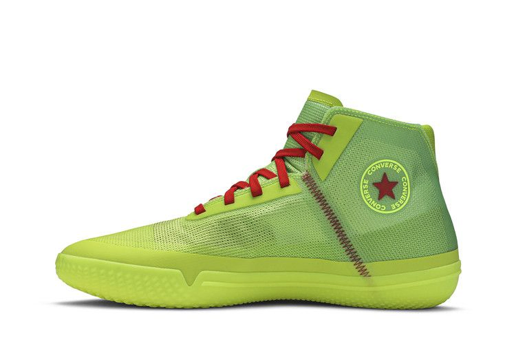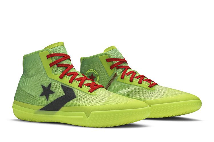 Converse All Star Pro BB "Nocturnal" сидят на светящейся в темноте подошве, выполненной в цвете Volt, что добавляет стиля во время ночных пикап-игр. Аналогичная градиентная смесь присутствует и в верхней части, выполненной из сетки Nike Quadfit для легкой и воздухопроницаемой поддержки. Красные шнурки сочетаются с нашивкой All Star на медиальной лодыжке, а с противоположной стороны на четверть панели красуется брендинг Star Chevron. Вставная стелька Nike React обеспечивает чуткую амортизацию.