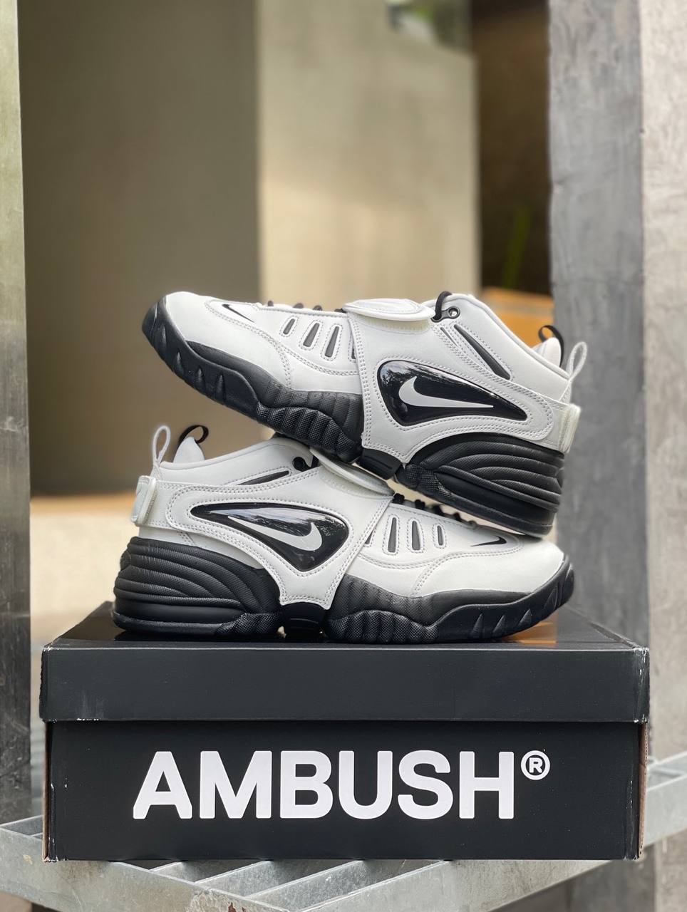 Коллаборация AMBUSH x Nike Air Adjust Force 'Summit White' воссоединяет бренды-партнеры на винтажной баскетбольной обуви, первоначально выпущенной в 1996 году. Ретро-силуэт использует белый кожаный верх со сменным ремешком, который обхватывает среднюю часть стопы и пятку. Последний имеет несочетаемые брендинги Ambush и Swoosh на левой и правой стороне обуви. Контрастная черная отделка применяется к скульптурной мидсоли, оснащенной видимой амортизацией Air-sole в пятке и поддерживаемой прочными резиновыми накладками в носочной и пяточной частях.- Цвета: Summit White/Black