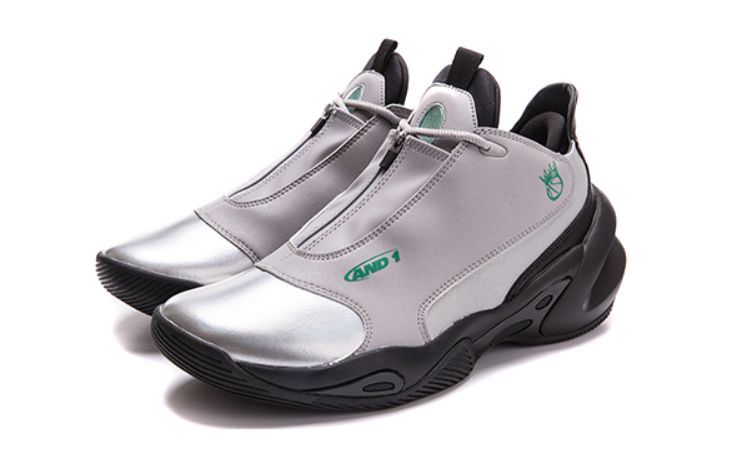 Баскетбольная модель средней высоты кроссовок AND1 THE K GENE MID в серебристой расцветке с чёрной подошвой.- Цвета: Silver Black