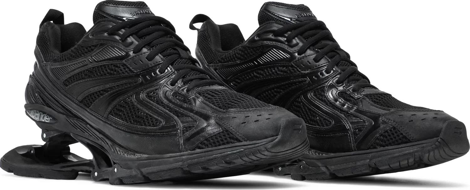 Balenciaga X-Pander 'Black', дебютировавшие в рамках коллекции одежды дома моды "Весна 2021", представляют собой монохроматический вариант беговой обуви в духе Демны Гвасалии, сочетающий многослойную ретро-эстетику с экспериментальными инструментами. Последнее подчеркивается приподнятым пружинящим каблуком с 40-миллиметровой аркой, которая сжимается и разжимается при каждом шаге. Верх без кожи состоит из дышащей сетки и синтетических накладок, которые чередуются между глянцевой отделкой и обветренной эстетикой. Надпись "Balenciaga" нанесена на прорезиненный язычок, а размер обуви указан на задней части пятки.