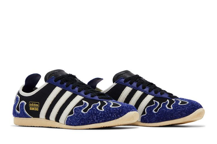 Brain Dead x adidas Japan 'Blue Warm Vanilla' - это совместный релиз, возрождающий архивный силуэт 1964 года. Верх из черного нейлона украшен белыми полосками из кожи с зазубринами и накладками из ворсистой замши насыщенного фиолетового оттенка. Двойной брендинг украшает боковую панель и носок. Резиновая подошва с рисунком "елочка" обеспечивает оптимальное сцепление с поверхностью.