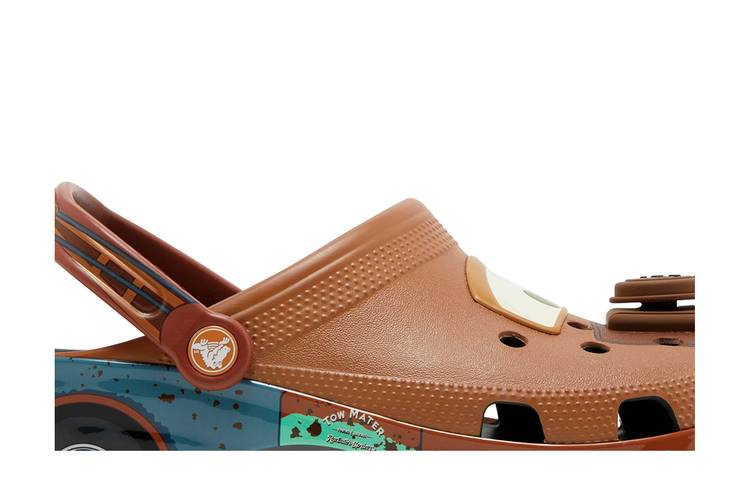 Сапоги Cars x Crocs Classic Clog 'Mater' посвящены кинофраншизе Pixar и представляют собой легкие сапожки, вдохновленные добродушным персонажем эвакуатора, который всегда готов протянуть руку помощи. Созданные из коричневой пены Croslite, эти сабо украшены изображением Мэтра в верхней части вампира, а также графикой на подошве, изображающей ржавый экстерьер и задние шины персонажа. Вентиляционные отверстия обеспечивают повышенную воздухопроницаемость, а вращающийся ремешок на пятке, украшенный пластиковым буксировочным крюком, обеспечивает надежную фиксацию.
