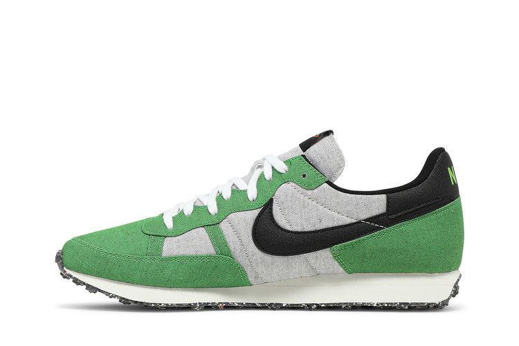 Nike Challenger OG "Mean Green" - зеленая модель, почти 1 к 1 повторяющая легендарные кроссовки, выпущенные в 1979 году. Переработанные материалы использованы в зеленом холщовом верхе, подчеркнутом черным Swoosh и контрастной серой панелью на медиальной стороне кроссовка. Носок из переработанного материала цвета Volt работает в тандеме с пружинистой подошвой из пеноматериала, обеспечивая мягкую посадку. Подошва с вафельным рисунком выполнена по технологии Nike Grind.