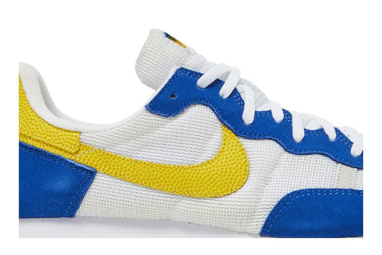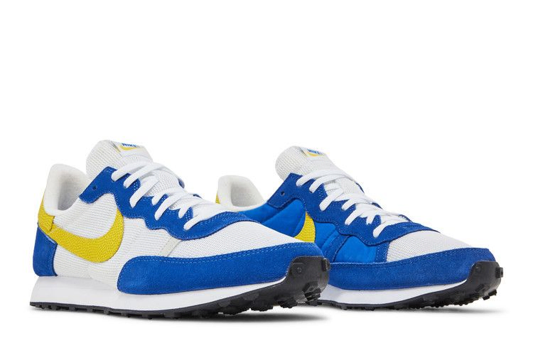 Модель Nike Challenger OG "Peace, Love and Basketball" обновляет винтажные кроссовки, добавляя в них характерные цвета и детали, вдохновленные Сан-Франциско 1960-х годов. Легкая конструкция кроссовок сочетает в себе белую сетчатую основу и замшевые накладки королевского синего цвета, на которых изображен ретро-логотип Nike в виде улыбающегося лица, вышитый на задней части пятки. Стелька и язычок пятки выполнены из желтой кожи с фактурой, напоминающей о баскетболе.