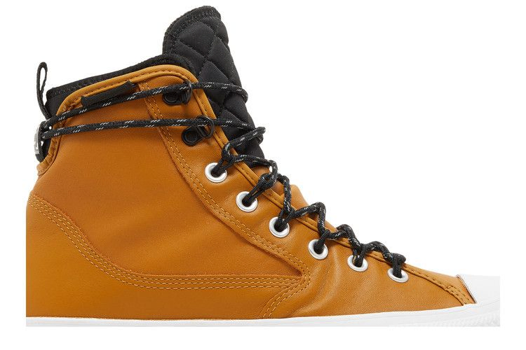 Модель Converse Chuck Taylor All Star All Terrain High 'Wheat' представляет собой вариацию силуэта, предназначенного для активного отдыха. Верхняя часть из водонепроницаемой кожи цвета загара с флисовой подкладкой и стеганым текстильным язычком. Светоотражающие веревочные шнурки продеваются через проушины D-кольца и оборачиваются вокруг воротника с высоким вырезом для создания стиля, вдохновленного походами. Прочная конструкция опирается на прочную белую резиновую промежуточную подошву, которая поддерживается подошвой из резины с высоким коэффициентом сцепления, созданной для пересеченной местности.