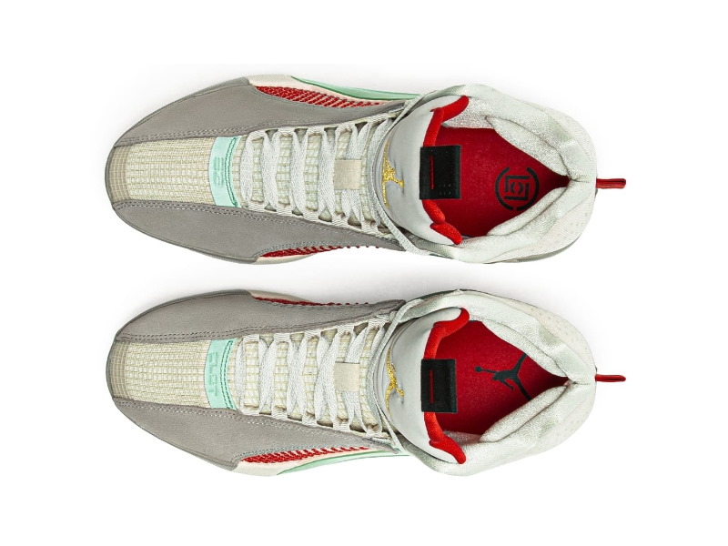 Модель CLOT x Air Jordan 35 «Sepia Stone» отражает дух Гонконгского бренда уличной одежды, основанного Эдисоном Ченом и Кевином Пуном. Нейтральные коричневые оттенки нанесены на верх из текстиля и замши, усиленные контрастными красными кабелями Flightwire, которые исходят наружу от нефритово-зеленой пластины Eclipse. Фирменный знак CLOT подчеркивает красные тканые язычки на пятке и светоотражающие нефритовые накладки на носке.- Цвета: Sepia Stone/Terra Blush/Desert Sand