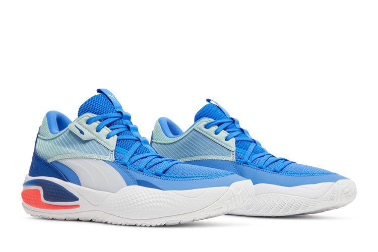 Модель PUMA Court Rider "Bluemazing" подчеркивает водные оттенки в обуви для хоккея, созданной для быстрого реагирования на игру на корте. Верх из текстиля с полупрозрачными накладками цвета морской волны, язычок из дышащей сетки и белая полоска TPU Formstrip выполнены в синем цвете. Контрастный ярко-красный цвет выделяет логотип PUMA в виде прыгающей кошки на накладке на пятке. Кроссовки установлены на отзывчивую промежуточную подошву Rider Foam, усиленную контурной подошвой из износостойкой резины.