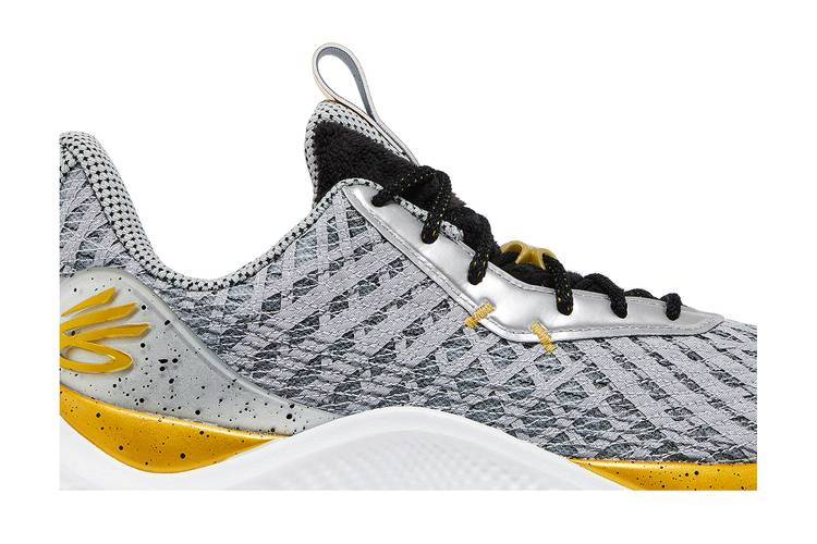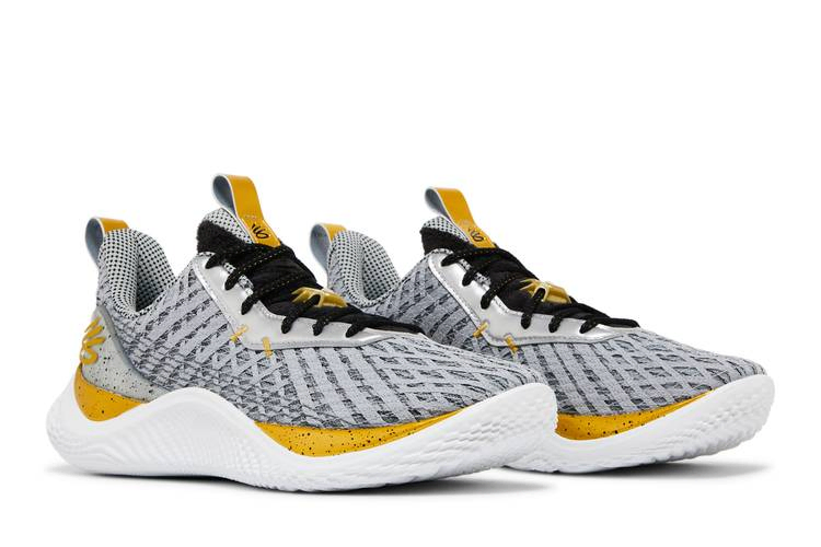 Модель Curry Flow 10 "Father to Son" празднует День отца 2023 года в специальной расцветке, которая связывает Стивена Карри с его отцом Деллом, чьи игры в НБА он посещал в детстве, и его сыном Кэноном, который постоянно присутствует на его собственных играх. Верхняя часть кроссовок выполнена из материала UA WARP светло-серого цвета и украшена золотистыми металлическими вставками на язычке и пятке. Легкая амортизация обеспечивается подошвой UA Flow, оснащенной внутренним голенищем для поддержки и устойчивости стопы.