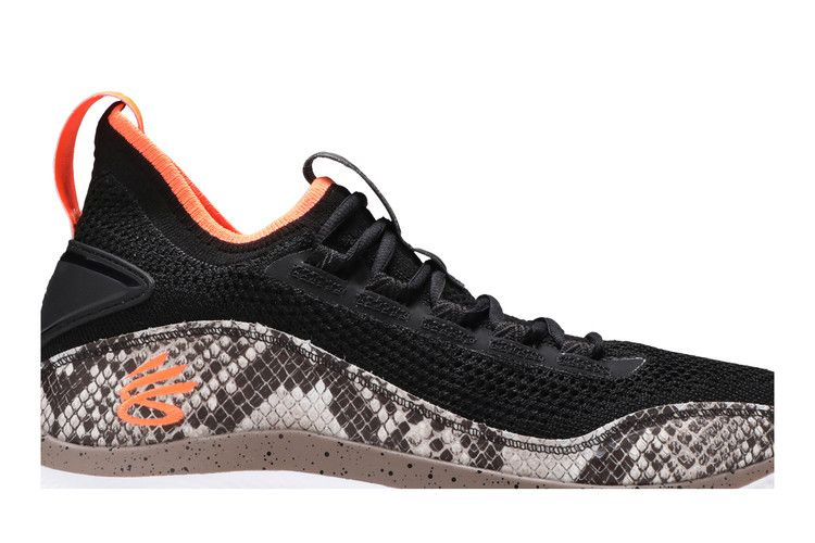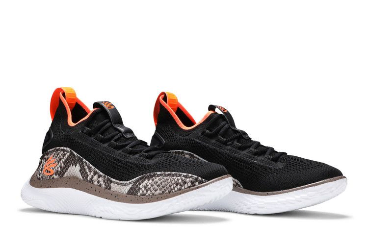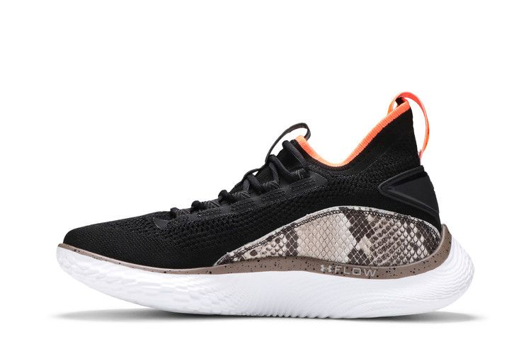 Модель Curry Flow 8 "Strike & Flow" обновляет восьмую фирменную обувь Стефа Карри благодаря воздухопроницаемому трикотажному верху черного цвета, усиленному внешней стойкой пятки и накладками из искусственной змеиной кожи. Конструкция в виде ботинка обеспечивает плотную и надежную посадку, а контрастные черно-оранжевые вставки на язычке и пятке позволяют легко надевать и снимать кроссовки. Легкая конструкция опирается на безупречно белую подошву UA Flow, обеспечивающую легкую амортизацию и надежное сцепление с поверхностью. Гибкая пластина Pebax обеспечивает повышенную устойчивость и поддержку при каждом шаге.