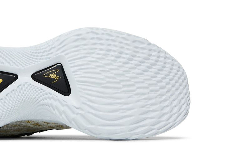 Curry Flow 9 "White Black" - это легкие кроссовки для хоккея с мячом, созданные на основе безрезиновой подошвы. Определяющей особенностью девятой фирменной модели Стивена Карри является промежуточная подошва UA Flow, которая обеспечивает сочетание упругой амортизации и исключительного сцепления. Под ногами находится открытая пластина хвостовика, обеспечивающая улучшенную поддержку при кручении. Верхняя часть выполнена из дышащей белой сетки UA Warp с нейлоновыми лентами в тон и желтыми полиэстеровыми шнурами для более надежной фиксации.