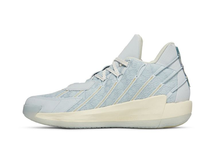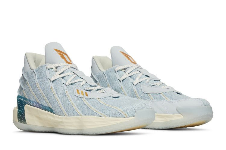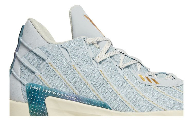 Рождественский пакет adidas Dame 7 представляет собой праздничную версию седьмых фирменных кроссовок Дамиана Лилларда. Верх из дышащего текстильного трикотажа окрашен в тонкий синий цвет Halo Blue, украшен золотыми деталями и металлическими золотыми элементами брендинга, включая личный логотип Дама на язычке. Легкая конструкция опирается на легкую промежуточную подошву Lightstrike, поддерживаемую полупрозрачной резиновой подошвой, предназначенной для сцепления с твердым покрытием.