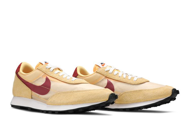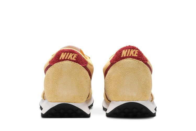 Nike Daybreak SP "Topaz Gold" - это модернизированная версия винтажных кроссовок, выпущенных в 1979 году. В конструкции кроссовок сочетаются прошлое и настоящее: полупрозрачный желтый материал Nexkin с тональными накладками из ворсистой замши вдоль задника, носка и пятки. Темно-красный логотип Swoosh с трафаретной печатью сочетается с замшевым язычком на пятке, украшенным брендингом Nike. Классическая подошва из вафельной резины обеспечивает надежное сцепление с поверхностью.