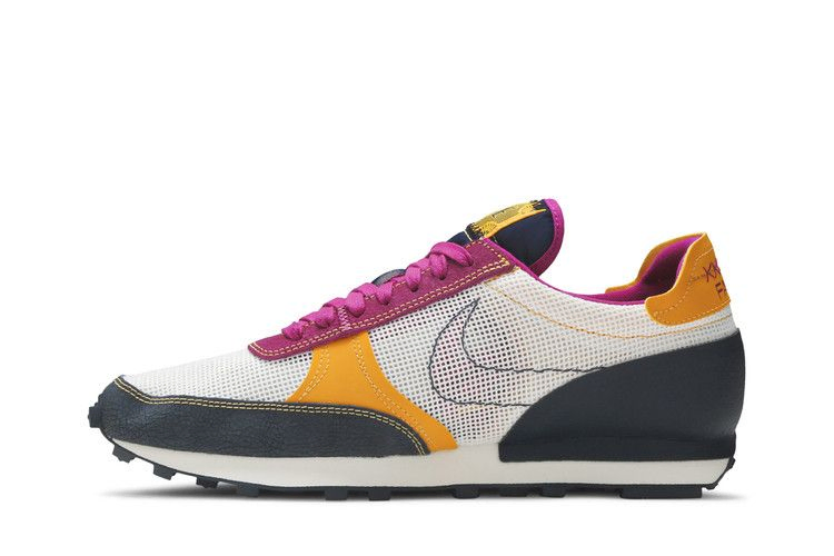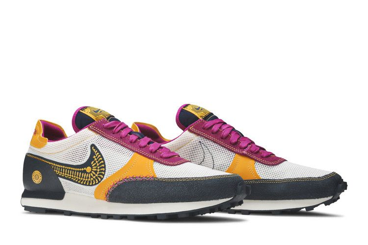 Модель Nike Daybreak Type "Día de Muertos" взята из капсульной коллекции, посвященной мексиканскому празднику, известному как День мертвых. Вдохновленные ретро-стилем кроссовки имеют красочную конструкцию, вдохновленную традиционными алтарями, связанными с праздником Día de Muertos. Открытая сетчатая конструкция кроссовок повторяет вид белого кружева, а графический рисунок на боковой пятке изображает цветок ноготков. Надписи "Para Mi" и "Familia" расположены на желтом кожаном язычке каблука на обеих кроссовках.
