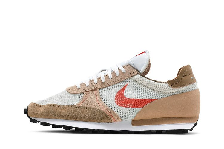 Nike Daybreak-Type 'Light Bone Orange' демонстрирует осенние оттенки на силуэте, вдохновленном беговым стилем 70-х годов. Верхняя часть выполнена в стиле деконструктивизма, подчеркнутого полупрозрачной сеткой песочного цвета и оранжевым логотипом Swoosh. Накладка на передней части стопы из натуральной замши придает воздушной носочной коробке структуру и прочность, а синтетическая накладка на пятке облегает заднюю часть стопы, обеспечивая плотную посадку. Кроссовки опираются на мягкую подошву из пеноматериала и укреплены резиновой подошвой Nike с вафельным рисунком.