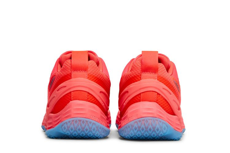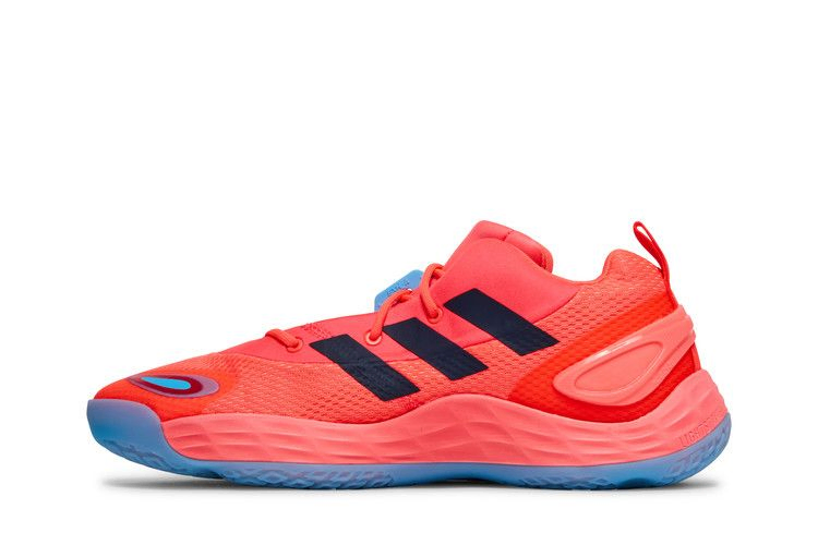 adidas Exhibit A "Acid Red" - это яркая отделка легких кроссовок, созданных для свободного движения. Сетчатый верх кораллового цвета с контрастными пудрово-голубыми акцентами и черным трехполосным брендингом на медиальной боковой четверти частично изготовлен из переработанного материала, собранного из отходов производства. Стабилизирующий зажим на пятке переходит в мягкую промежуточную подошву Lightstrike, которая поддерживается полупрозрачной подошвой из голубой резины.