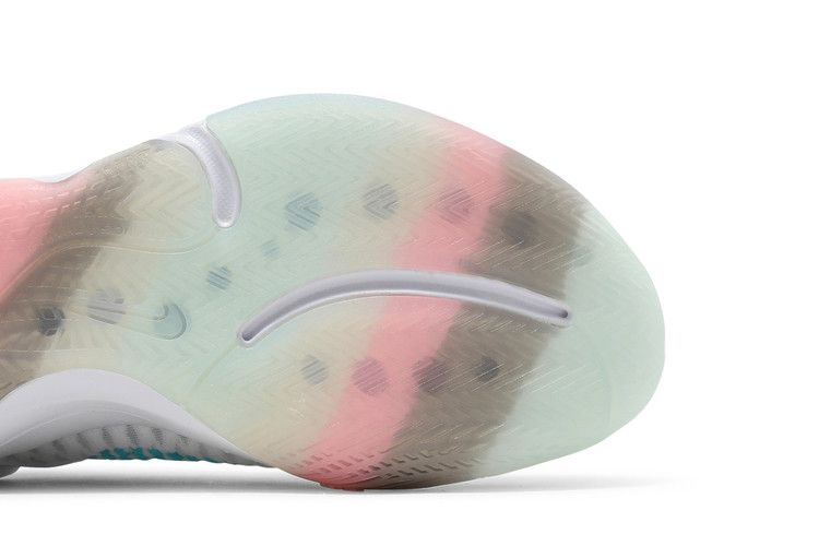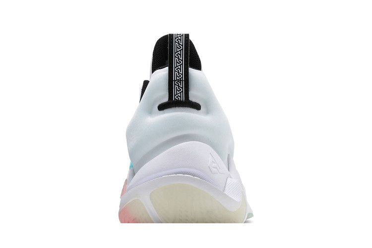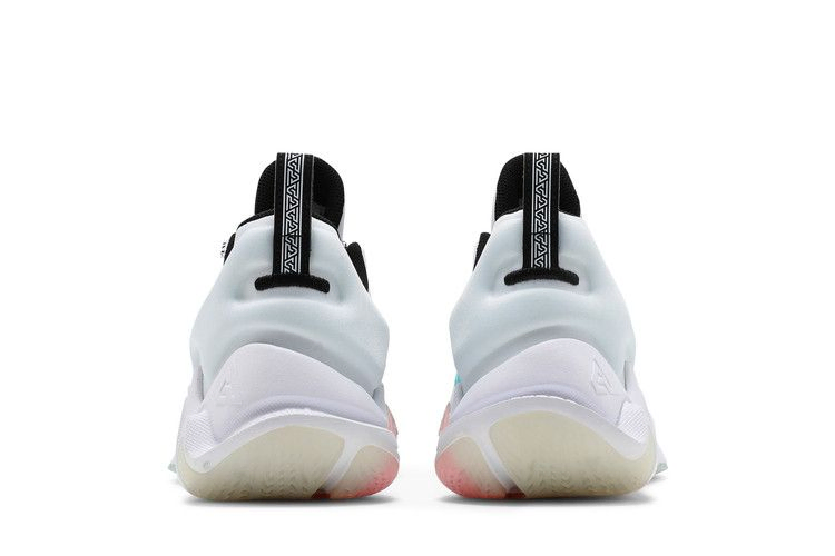 Кроссовки Nike Giannis Immortality 'Force Field' украшены пастельными акцентами на легком верхе, выполненном из белой искусственной сетки. На язычке полное имя Джанниса Антокунмпо сопровождается логотипом его персоны, а на мыске выбит номер джерси спортсмена. Внутренний ремешок в средней части стопы и плюшевая накладка на пятке создают комфортную фиксацию задней части стопы. Легкая амортизация обеспечивается скульптурной подошвой из пеноматериала, усиленной многоцветной полупрозрачной резиновой подошвой с гибкими канавками и цепким протектором "елочка".