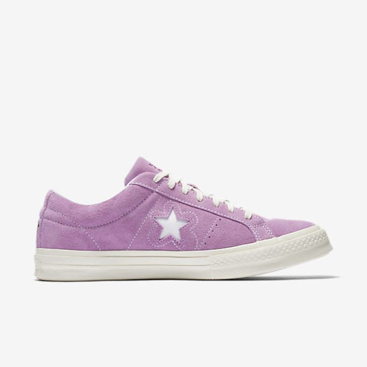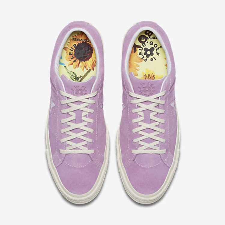 Модель Golf le Fleur x One Start Suede, разработанная Тайлером Креатором, является частью сотрудничества между Golf Wang и Converse. На верхней части из замши премиум-класса красуется цвет Fuchsia Glow, вырезанный для создания One Star. Белые стежки создают цветок вокруг легендарного бренда, а на язычке красуется клеймо Golf le Fleur.