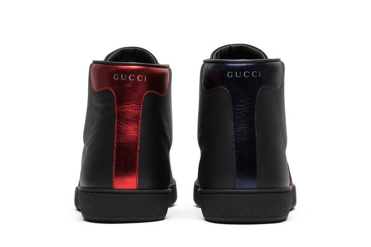 Gucci трансформирует свой винтажный силуэт Ace в модель High-Top. Верхняя часть из натуральной кожи изготовлена с итальянским мастерством. На каблуке расположены контрастные красные и синие металлические панели, а четверть панели расшита фирменной тесьмой бренда с золотой вышивкой в виде пчелы - основной дизайнерский мотив 1970-х годов.