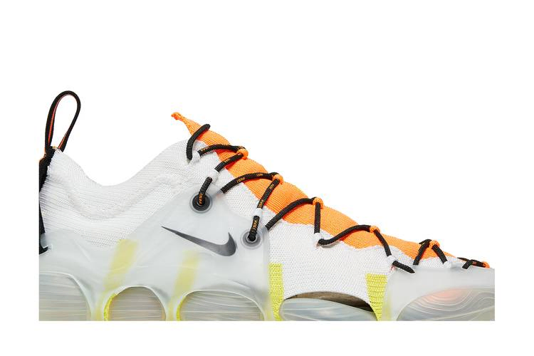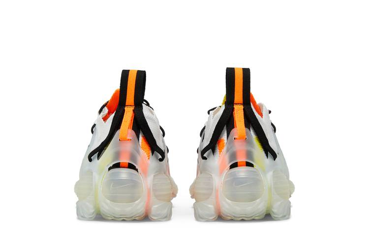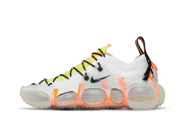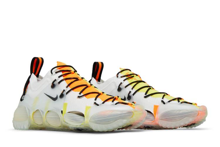 Nike ISPA Link Axis "Total Orange Sonic Yellow" - это силуэт, основанный на принципах кругового дизайна, в котором особое внимание уделяется выбору материалов, модульности и сокращению отходов. Черные веревочные шнурки фиксируют верхнюю часть, выполненную из белого переработанного полиэстера Flyknit с контрастными вкраплениями желтого и оранжевого цветов на заднике. Полупрозрачный каркас из 20% переработанного TPU переходит в "дутую" промежуточную подошву из TPU, состоящую из обрезков воздушных подушек и снабженную механической амортизацией Nike Air для комфортной посадки.