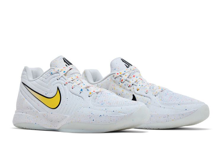 Модель Nike Ja 2 "Ja-Breaker" вдохновлена любимыми конфетами Джа Моранта. Напоминающие внешнюю оболочку Jawbreaker, разноцветные крапинки украшают белый верх из сетки и искусственной кожи. Боковая сторона Swoosh, очерченная черной рамкой, имеет градиентную желтую отделку. На язычке красуется персональный логотип Джа, а на задней вкладке со светоотражающими элементами - надпись "12:AM". Легкая подошва Phylon с амортизацией Zoom Air в передней части.