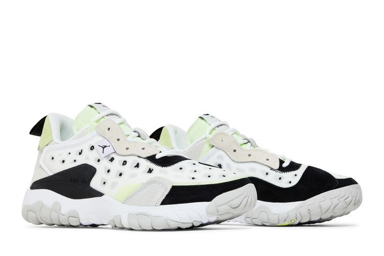 Jordan Delta 2 "Cyber Green" - это яркие акценты на силуэте, созданном из эклектичного сочетания материалов. Открытая строчка и необработанные края придают верхней части модели вид ручной работы, состоящей из белого текстиля, серой замши и гладкого нубука цвета "серый туман". Ярко-зеленый цвет украшает замшевый язычок и язычок с легкой набивкой. Мягкая и упругая амортизация обеспечивается промежуточной подошвой Nike React, усиленной полупрозрачными резиновыми накладками для надежного сцепления.