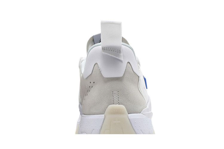Модель Jordan Delta 2 "White Royal" представляет собой силуэт, выполненный из белой сетки, кожи и замши. Контрастные королевские синие акценты расположены на тканом язычке и носочной части, а также на боковой накладке для глаз с логотипом Jumpman. Литой брызговик из TPU обеспечивает повышенную устойчивость и поддержку. Низкие кроссовки опираются на промежуточную подошву из пеноматериала React, укрепленную под ногами полупрозрачными резиновыми накладками.