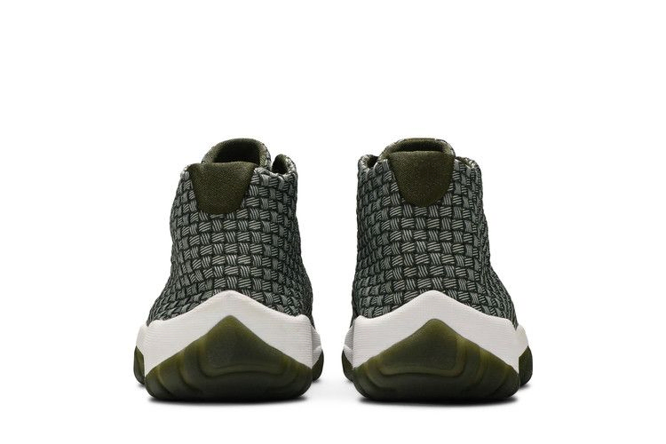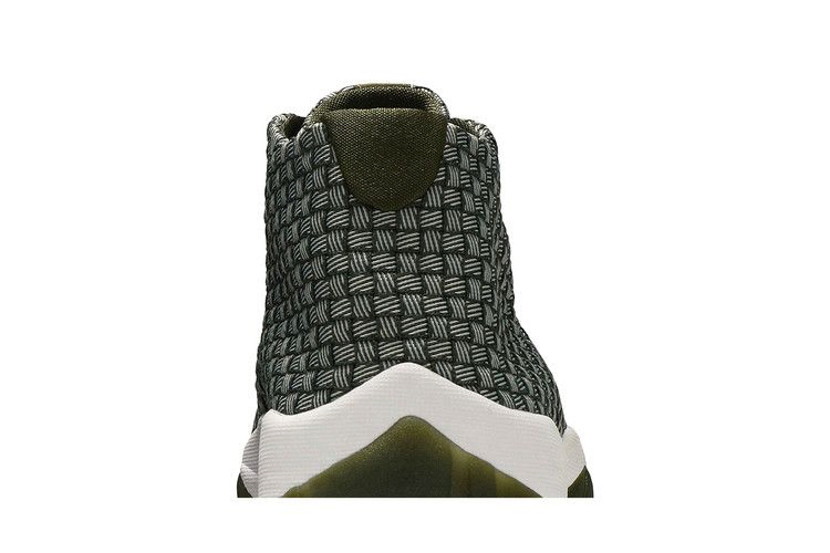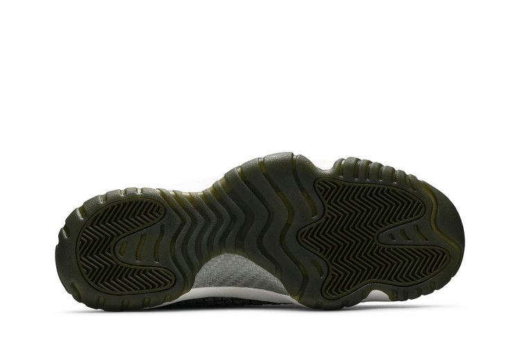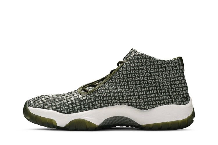 В модели Jordan Future, которая является частью Air Jordan 11 и частью обуви для активного отдыха, органично сочетаются старое и новое. Jordan Future - это легкие текстильные кроссовки, выполненные в цвете Olive Canvas с тканым узором по всей поверхности. Асимметричная система шнуровки, подошва Phylon для легкой амортизации, золотые акценты на логотипе Jumpman и резиновая подошва для дополнительного сцепления с поверхностью.