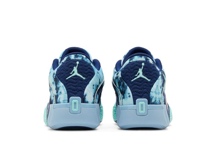 Jordan Tatum 2 'Denim' обновляет фирменную обувь Джейсона Татума-второкурсника текстильным верхом с синим рисунком в стиле tie-dye. С каждой стороны низкого верха расположены стратегически важные текстильные и пенные подушечки контрастного розового и бирюзового оттенков. На язычке красуется личный логотип Джейсона, а на задней части пятки - вышитый брендинг Jumpman. Амортизация выполнена в виде полноразмерного блока Nike Air Strobel, который расположен на легкой подошве из пеноматериала. Резиновая подошва имеет модифицированный рисунок сцепления "елочка" для оптимального сцепления.