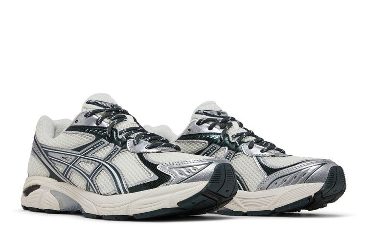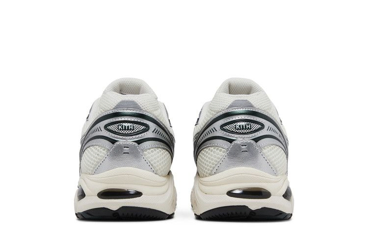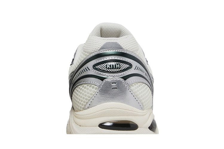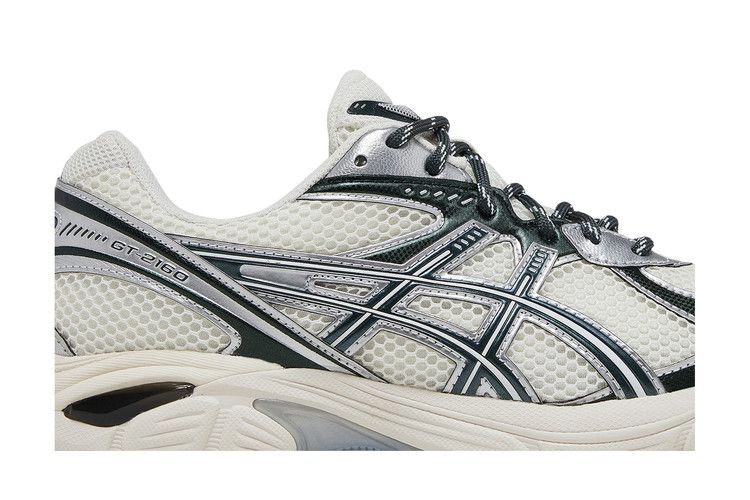 Модель 2024 года Kith x ASICS GT 2160 "Cream Scarab" имеет вентилируемый верх из белой сетки с накладками из искусственной кожи цвета серебристого и темно-зеленого металлика. Эти же цвета подчеркивают плавные линии фирменных тигровых полос. Эти кроссовки обеспечивают комфортное передвижение благодаря легкой промежуточной подошве из ЭВА и амортизирующей вставке Gel в пятке. Прочная резиновая подошва оснащена голенищем из TPU для устойчивости в средней части стопы.