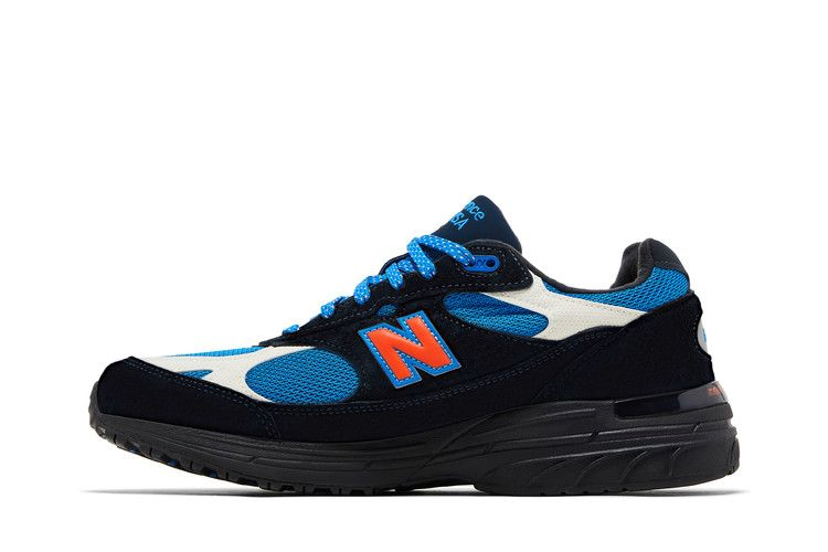 Модель Kith x Madison Square Garden x New Balance 993 Made in USA 'New York Knicks - Away' отдает дань уважения крытой арене, известной как Мекка баскетбола. Верх кроссовок выполнен из сетки королевского синего цвета с замшевыми накладками темно-темного цвета. Дополнительные накладки из контрастного нубука белого цвета укрепляют воротник и мысок. Яркий оранжевый логотип "N" с синей окантовкой украшает заднюю панель, а вышитый знак "KITH" - заднюю часть пятки. Кроссовки имеют легкую промежуточную подошву ABZORB.